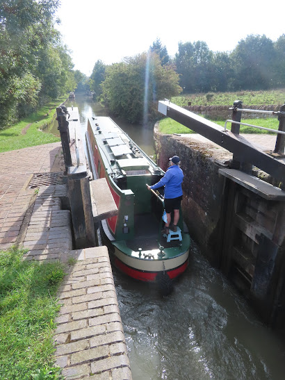 The sun was shining brightly as Helen helped us down the first lock. She was standing under a trumpet flower 'tree'. We have one in a hedge and didn't realise that they would grow like this. I will have to think about pruning it differently.