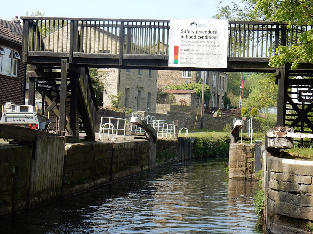 The second lock drops you down into the Calder for the first time, and the first time on a river this year. Usually you can use the current in the river to assist in picking up from the landings, but the flow was so little that the slight wind was stronger!